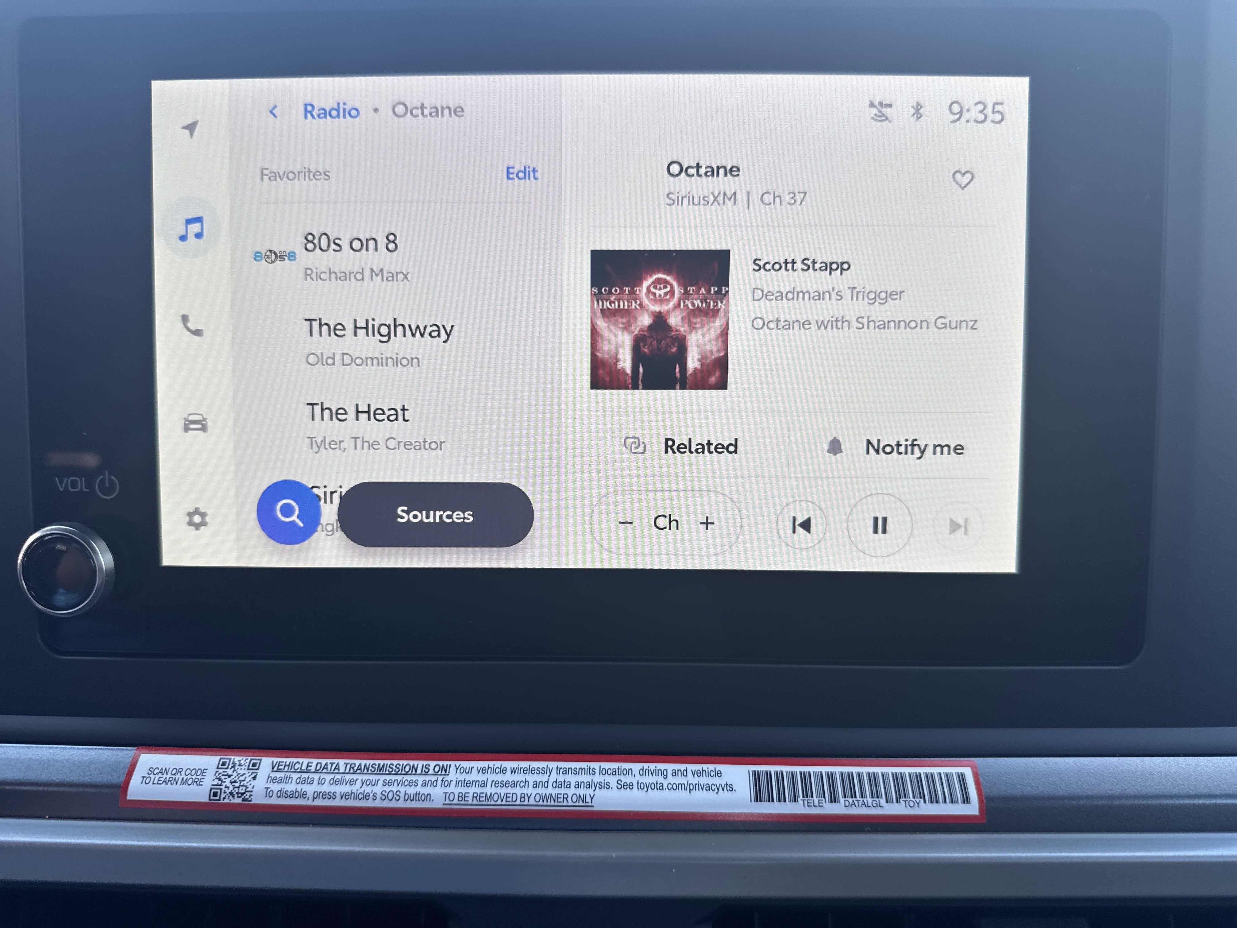 • 8-in. Toyota Audio Multimedia display with 6-speaker audio system, wireless Apple CarPlay® 21 & Android Auto™ 10 compatibility, SiriusXM® 3-month trial. 108 See toyota.com/connected-services for details.