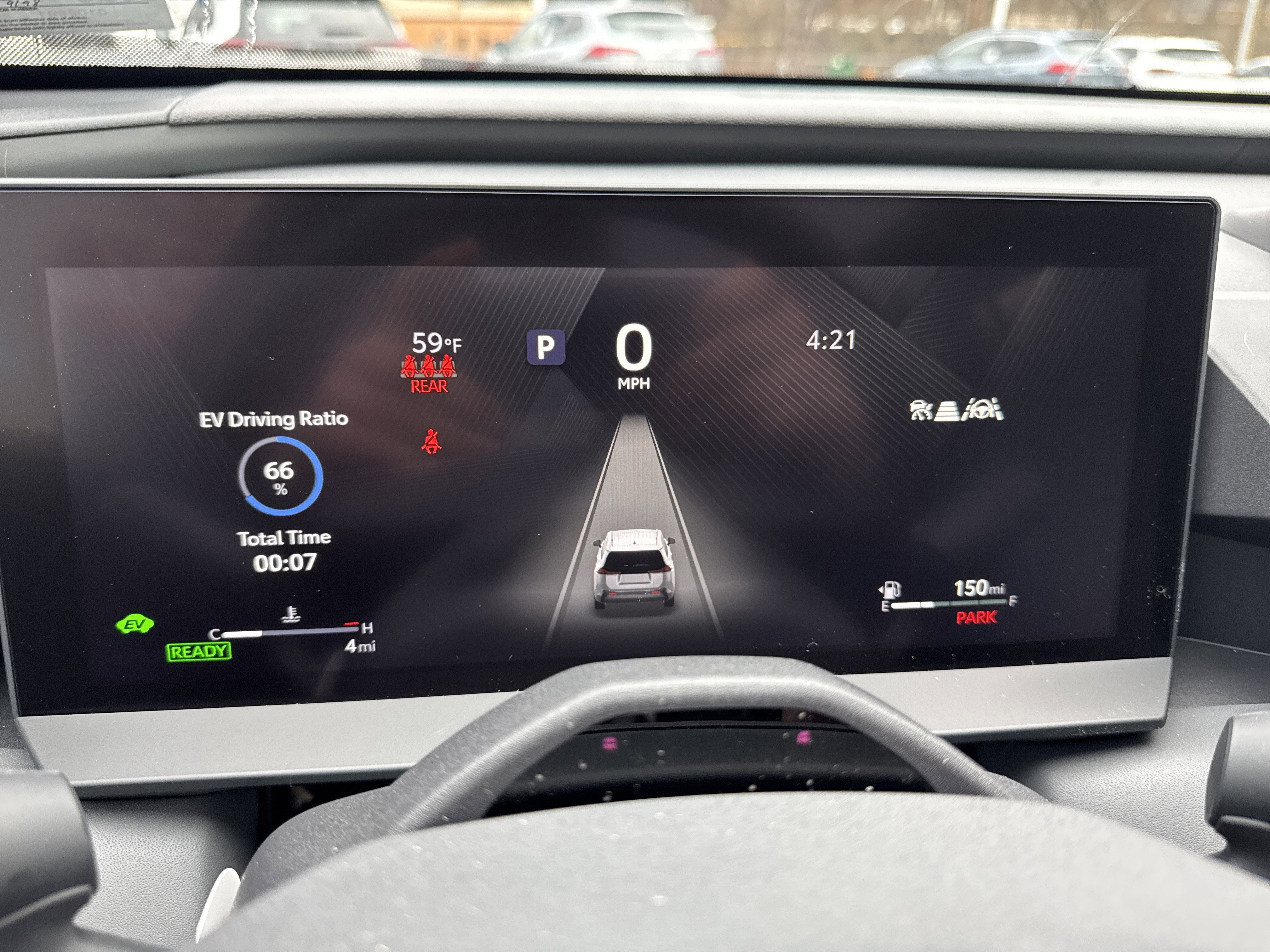 22. EV Mode lets you operate solely on battery power at low speeds for short distances and in limited circumstances, such as in a parking garage. Different conditions may prevent or limit usage. See your Owner’s Manual for instructions and limitations.