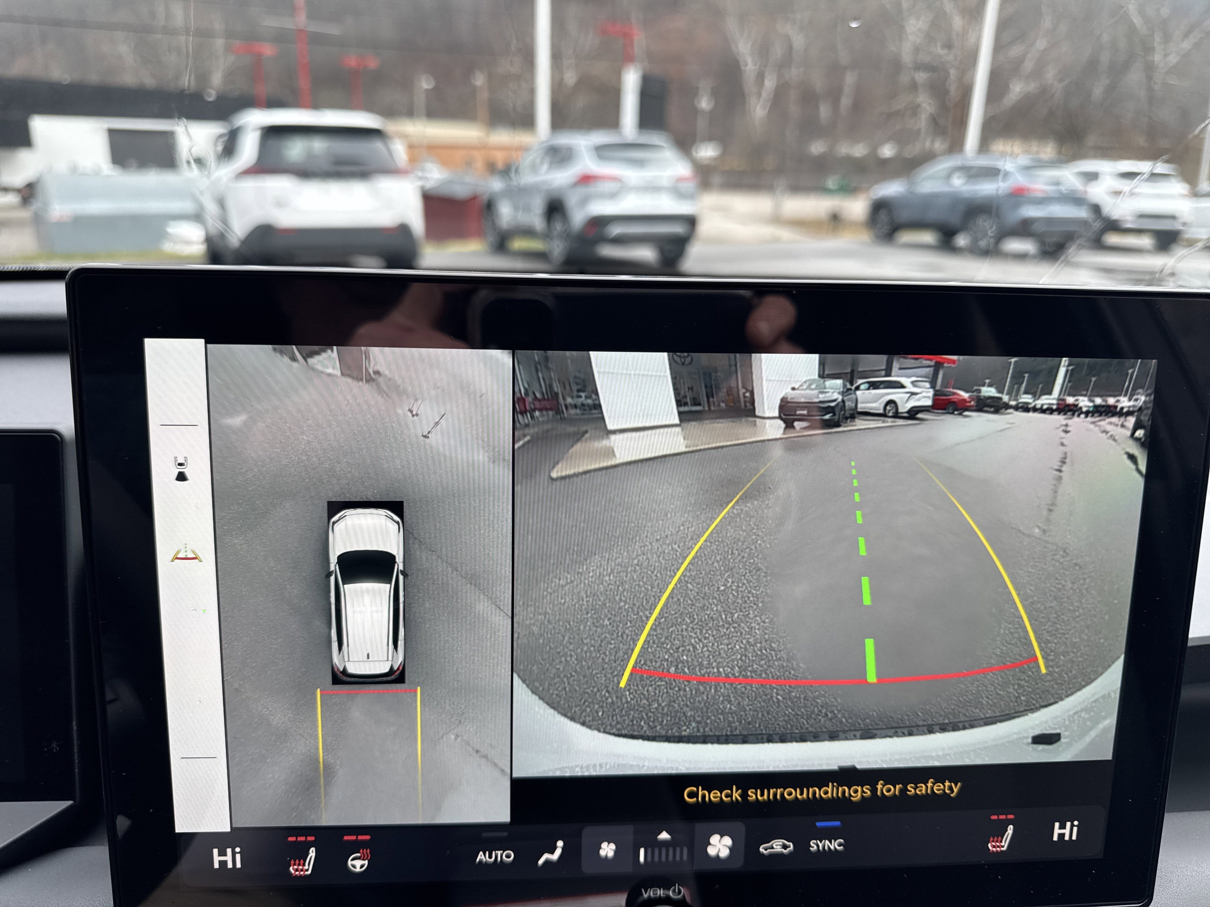 41. The Panoramic View Monitor does not provide a comprehensive view of the area surrounding your vehicle. Look around to confirm clearance. See Owner’s Manual for limitations.