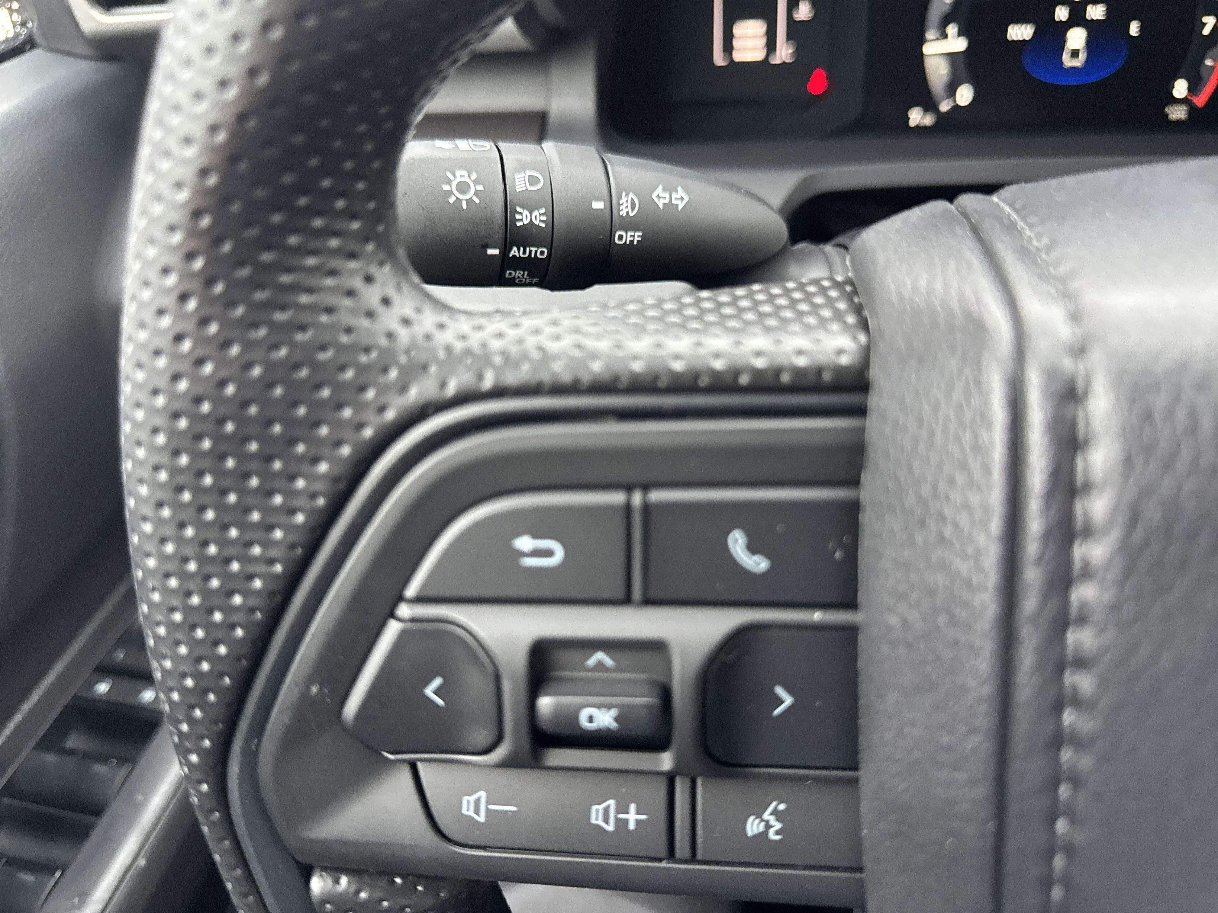 • Polyurethane manual tilt/telescopic steering wheel with phone, audio, display/infotainment, and Driver Assist controls