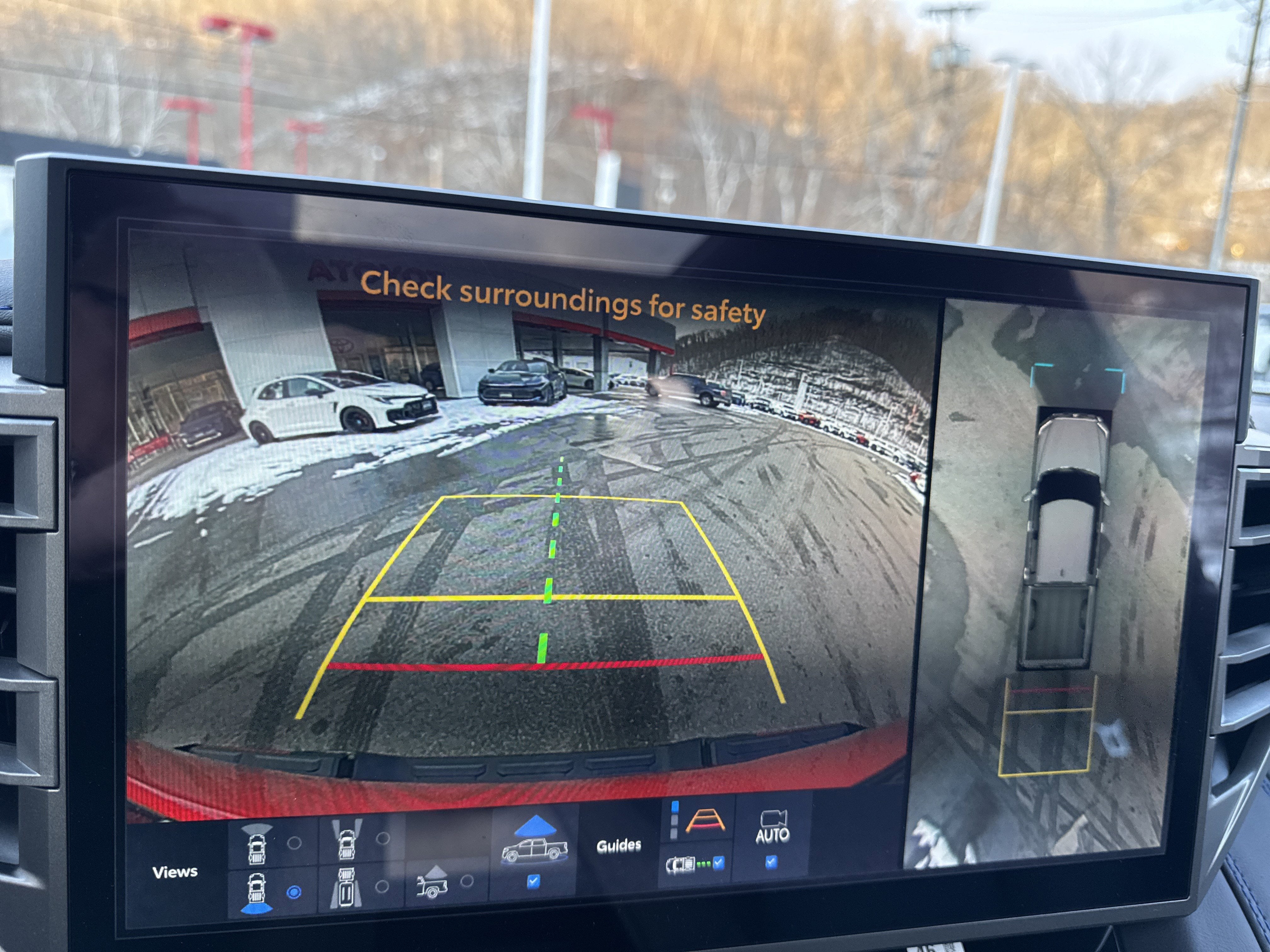 48. The Panoramic View Monitor does not provide a comprehensive view of the area surrounding your vehicle. Look around to confirm clearance. See Owner’s Manual for limitations.